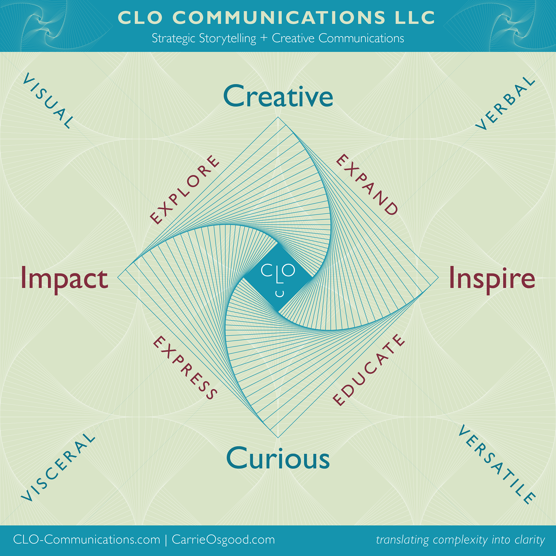 Carrie Osgood speaks design, sees type, hears copy, pictures data, reads audiences and translates complexity into clarity. She empowers businesses, organizations and individuals to communicate with impact through all they show and say – providing effective, customized solutions to complex storytelling, branding and education challenges across all media.