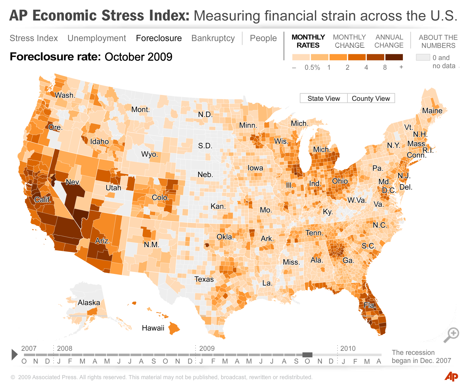 Carrie collaborated with a team of reporters and developers across the country in 2009 to create the AP Economic Stress Index and accompanying Stress Map, tools that generated a comprehensive view of the nation’s economic health during the Great Recession.