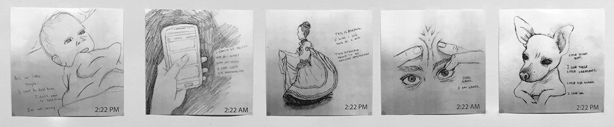 Liliana Chavez – “2:22” Illustration Series (photo of exhibition presentation) ››